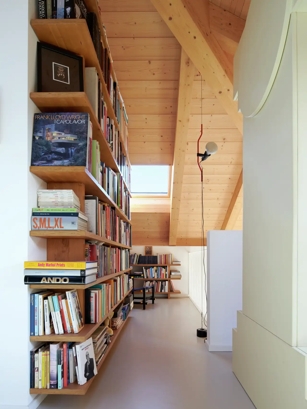 Cependant, toutes les bibliothèques n'ont pas besoin de s'appuyer contre un mur : si vous avez une mansarde suffisamment grande, pourquoi ne pas utiliser ce meuble pour délimiter l'espace ?