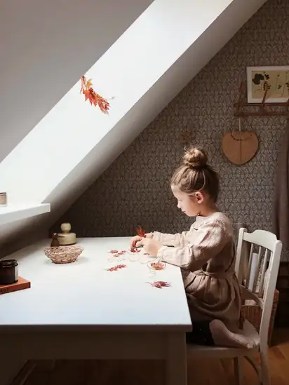 Une fenêtre de toit bien intégrée passe aussi par des stores assortis à la décoration. Avec la collection VELUX Colour by You, vous disposez de plus de 1800 teintes pour accorder stores et papier peint, même dans les pentes les plus complexes.