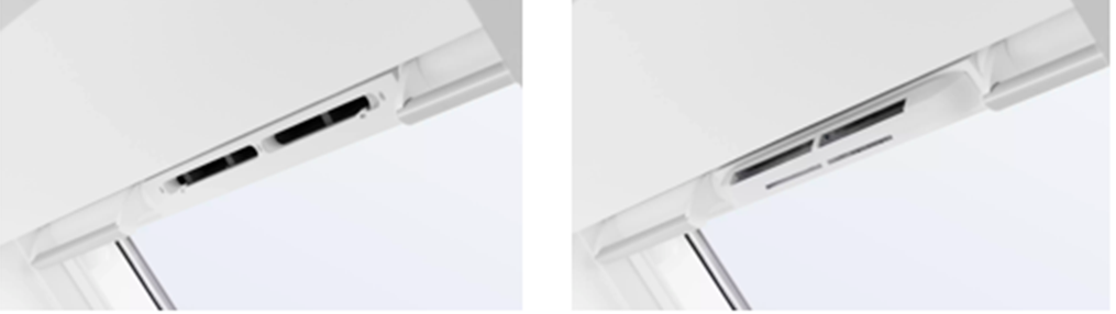 Il existe des barres de manœuvre spécifiques (venant en remplacement de la barre d'origine) prêtes à recevoir des grilles d'entrée d'air sur toutes les fenêtres de toit à ventilation haute. Ces grilles régulent le débit d'air entre 5 et 45m3/h.